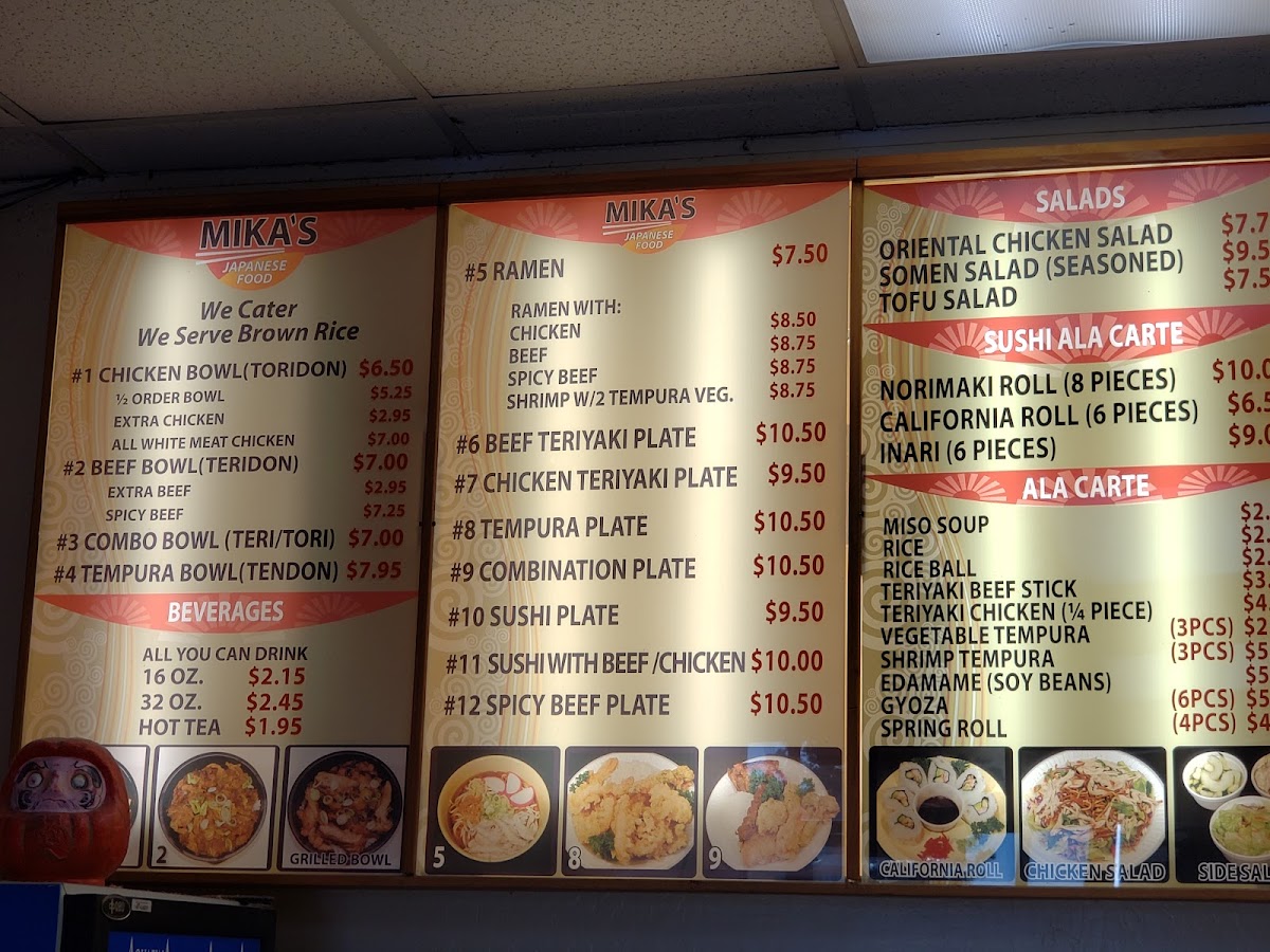 The menu is thoughtfully paced to accommodate the rhythm of everyday dining, whether you're stopping by for a warm bowl of hot tea accompanied by a steaming miso soup or settling in for a shareable plate of spicy stir-fry. Mika’s also offers a variety of beverages, from traditional Ramune to familiar soda choices, complementing the food with casual refreshment options that suit varied tastes and moments.